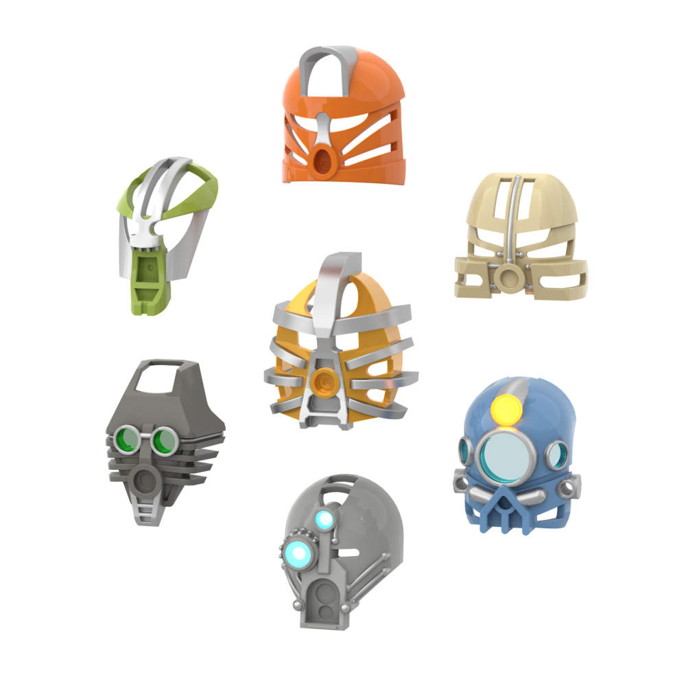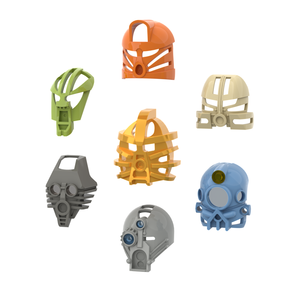 My first masks I have made, this has all seven with both a split and full versions. In joy the Kanohi