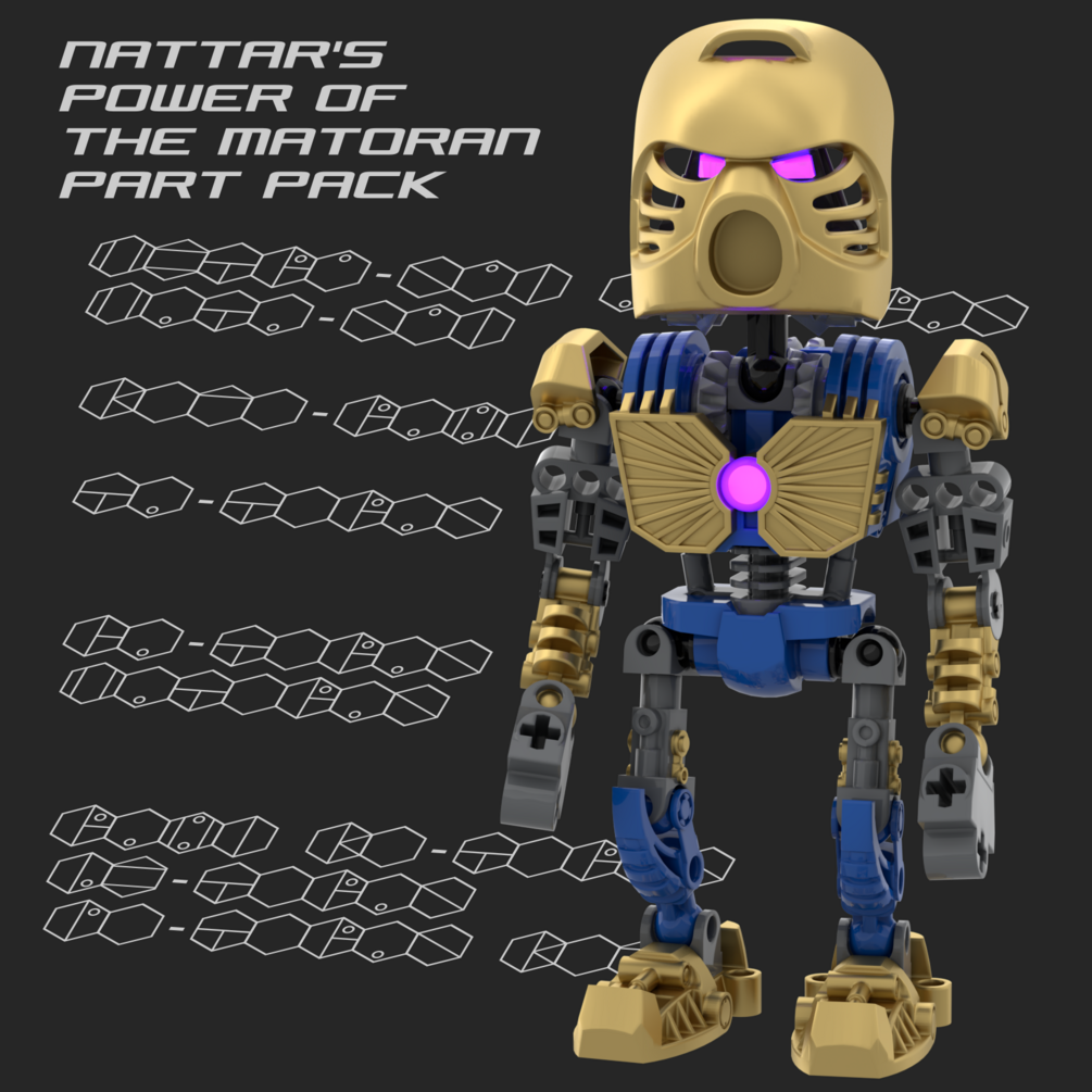 The Power of the Matoran part pack gives you 169 new Nat parts, and a handful of my older parts in case you do not have the packs needed for some of the build. You can build Matoran with a wide variety of limbs and chests. The Toso has a gear box in it, which is great for Matoran and chibi Toa Mata. Some of the parts are also vary good for building mini Rahi. Happy building! Lets your take of the world of Bionicle